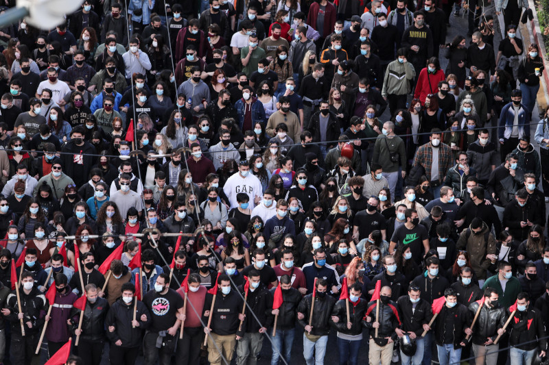 Οι συγκεντρωμένοι αντιδρούν στο νομοσχέδιο που φέρνει αλλαγές στον τρόπο εισαγωγής στα ΑΕΙ, καθώς επίσης και στην ίδρυση ειδικής αστυνομικής ομάδας στα πανεπιστήμια, αλλά και σε σειρά άλλων θεμάτων.