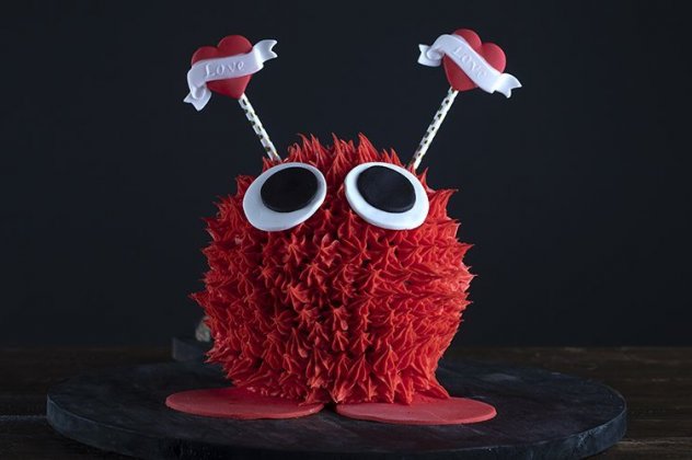 - Με το κορνέ που έχει μέσα τη βουτυρόκρεμα γεμίζουμε όλη την επιφάνεια του κέικ με “μυτιές” έτσι ώστε να μοιάζουν με τούφες μαλλιών.