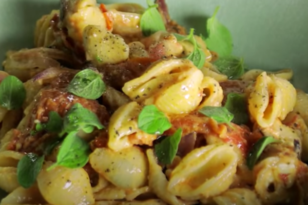 - Παράλληλα, σε μια κατσαρόλα με αλατισμένο νερό βάζουμε τα ζυμαρικά και βράζουμε σύμφωνα με τις οδηγίες της συσκευασίας.