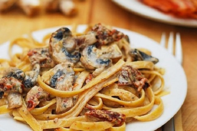 Για να φτιάξουμε τις ταλιατέλες με ψαρονέφρι, κόβουμε πρώτα το φιλέτο σε λεπτές φέτες. Ζεσταίνουμε το ελαιόλαδο και ροδίζουμε το κρέας και από τις δύο πλευρές. Προσθέτουμε το κρεμμύδι και το σκόρδο ολόκληρο. Αφήνουμε να γίνει διάφανο για λίγα λεπτά. Προσθέτουμε τις ημιλιαστές ντομάτες, τα μανιτάρια. Σοτάρουμε για 2΄σε δυνατή φωτιά και σβήνουμε με το κρασί. Αρωματίζουμε με το θυμάρι. Αλατοπιπερώνουμε (με προσοχή το αλάτι γιατί οι λιαστές ντομάτες είναι αρκετά αλατισμένες). Σιγοβράζουμε τη σάλτσα για λίγα λεπτά μέχρι να δέσει ελαφρά.