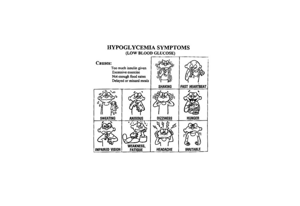 Η ελάττωση των επιπέδων της γλυκόζης σε φυσιολογικά άτομα έχει τις ακόλουθες συνέπειες (αντιστοιχισμένες απόλυτα με τα συγκεκριμένα επίπεδα γλυκόζης πλάσματος).