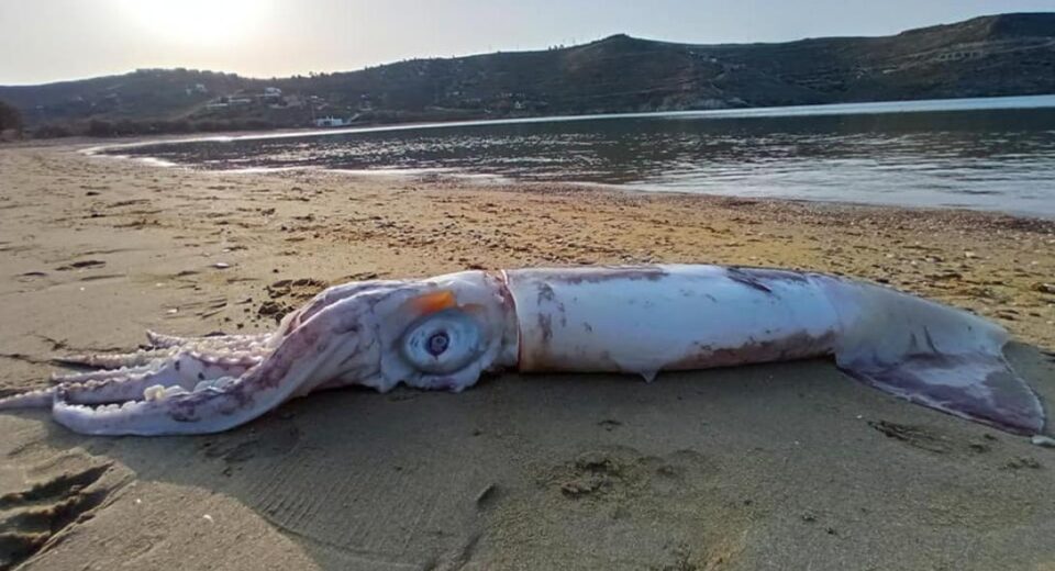Ένα γιγαντιαίο θράψαλο άνω του ενός μέτρου ξεβράστηκε σε παραλία της Κέας και τράβηξε την προσοχή των περαστικών.