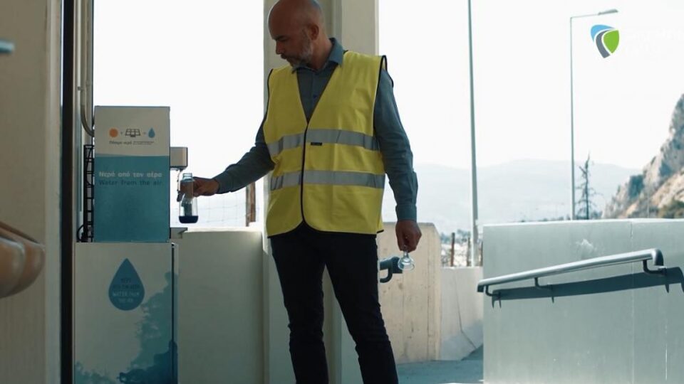 Το σύστημα «Νερό από τον αέρα» είναι απλό, αποτελεσματικό και ασφαλές: αποτελείται από ένα υδρο-συλλέκτη που λειτουργεί αποκλειστικά με ηλιακή ενέργεια και μέσω ενός συμπιεστή μετατρέπει τους υδρατμούς του ατμοσφαιρικού αέρα σε νερό, το οποίο συλλέγεται σε δεξαμενή που είναι ενσωματωμένη στην εγκατάσταση. Στη συνέχεια το συλλεγόμενο νερό εμπλουτίζεται με μεταλλικά στοιχεία που βελτιστοποιούν τα ποιοτικά και γευστικά χαρακτηριστικά του, καθιστώντας το ιδανικό για πόση. Παράλληλα, με την προσθήκη ενός ψύκτη, που λειτουργεί επίσης με ηλιακή ενέργεια, εξασφαλίζεται η παροχή δροσερού νερού στους οδηγούς και τους συνεπιβάτες τους, κάτι ιδιαίτερα χρήσιμο κατά τους καλοκαιρινούς μήνες. Η συσκευή μπορεί να παράγει περίπου 10-12 λίτρα φρέσκου, πόσιμου νερού την ημέρα.