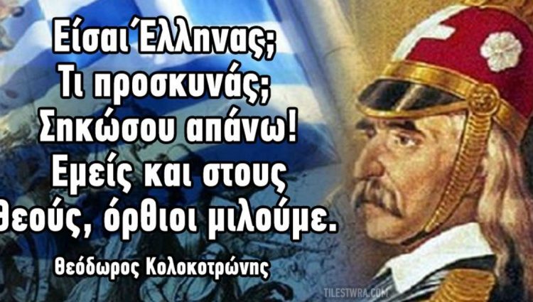 «Να είστε, λοιπόν, αγαπημένοι. Οπλιστείτε με τον ζήλο του Θεού και πάρτε τα όπλα σας, διότι είναι προτιμότερο να πεθάνει κανείς πολεμώντας, παρά να ντροπιάσει τα ιερά της Πίστης του και την Πατρίδα του. …Η ιστορία και το μέλλον της Ελλάδας στηρίζονται πάνω στη Θρησκεία, στην Ελευθερία και στην Πατρίδα.»