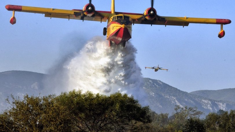 Από αέρος επιχειρούν δυο πυροσβεστικά καναντέρ.