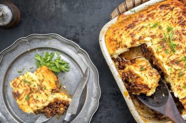 Αδειάζουμε τον πουρέ πατάτας πάνω στον κιμά και ψήνουμε την πίτα του βοσκού στους 200°C σε αντιστάσεις για 15΄. Χαμηλώνουμε στους 180°C και συνεχίζουμε το ψήσιμο για 40΄, μέχρι να ροδίσει ο πουρές.