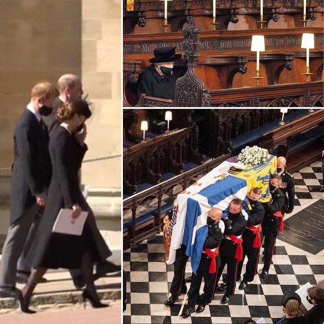 Μαζί και το ναυτικό του πηλήκιο και το σπαθί του. Τοποθετήθηκε στην πράσινη στρατιωτική Land Rover και συνοδεύθηκε από το κάστρο του Γουίνδσορ μέχρι το παρεκκλήσι του Αγίου Γεωργίου από την πομπή μελών της οικογένειάς του με επικεφαλής τον πρίγκιπα Κάρολο και την πριγκίπισσα Αννα. Η βασίλισσα Ελισάβετ ακολούθησε το φέρετρο με την βασιλική Bentley.