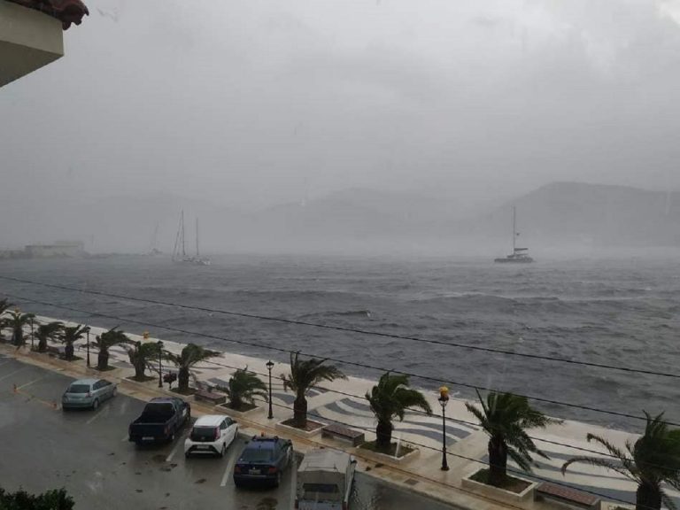 Ισχυρή καταιγίδα πλήττει αυτήν την ώρα την Κεφαλονιά , που συνοδεύεται μάλιστα από έντονη χαλαζόπτωση , δημιουργώντας ένα χειμωνιάτικο σκηνικό στο νησί.