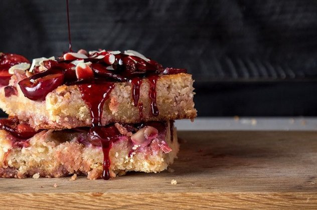 - Σερβίρουμε με 30 γρ. κεράσια και το φιλέ αμυγδάλου.
