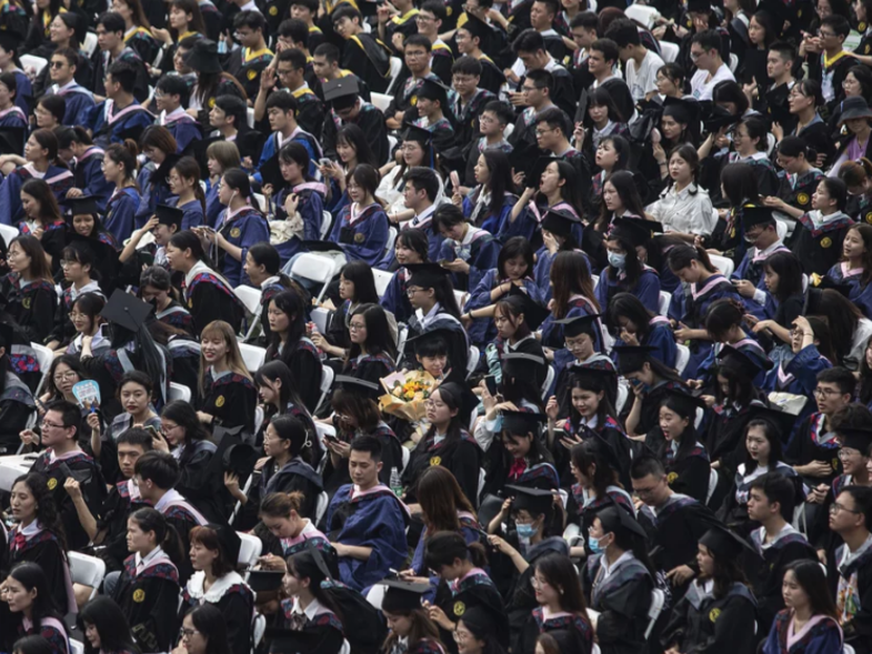Οι φοιτητές με τις στολές τους και τα καπέλα αποφοίτησής τους κάθονταν σε ασφυκτικά γεμάτες σειρές, χωρίς κοινωνικές αποστάσεις ή μάσκες στην τελετή, που πραγματοποιήθηκε σε ένα αθλητικό στάδιο στο Πανεπιστήμιο της Κεντρικής Κίνας. Η τελετή αποφοίτησης έγινε εν μέσω της επανεμφάνισης μιας υπόθεσης σχετικά με την προέλευση του Covid-19 που αρχικά απορρίφθηκε ως θεωρία συνωμοσίας.