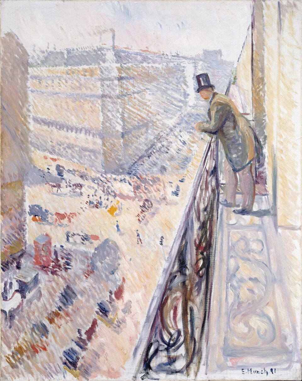 O Edvard Munch το 1889, έλαβε μια επιχορήγηση από το Νορβηγικό κράτος και πήγε στο Παρίσι για να γνωρίσει τόσο τη σύγχρονη τέχνη, όσο και τον εκεί τρόπο ζωής. Στο έργο του Rue Lafayette, 1891, διακρίνουμε το έντονο ενδιαφέρον του ζωγράφου για τον ιμπρεσιονισμό και έχουμε την ανοιξιάτικη θέα από το μπαλκόνι του προς τους γύρω δρόμους και συνοικίες, όπως διαμορφώθηκαν μετά την πολεοδομική ανανέωση που έγινε στο Παρίσι το δεύτερο μισό του 19ου αιώνα.