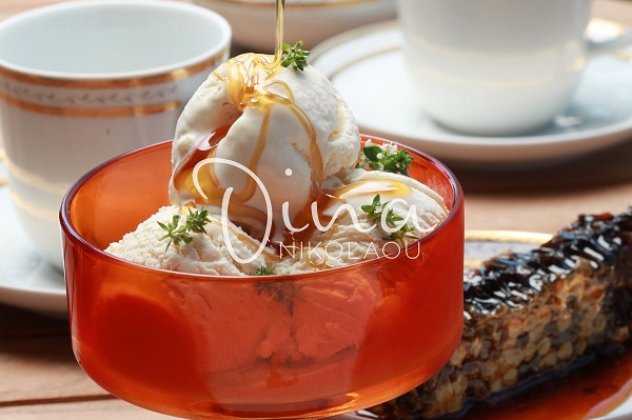 ΒΗΜΑ 5 Σερβίρω το παγωτό μου σε όμορφα μπολ, το στολίζω με τα αρωματικά φυλλαράκια του δυόσμου ή το πασπαλίζω με τριμμένο καρύδι και ολοκληρώνω το γαρνίρισμα απλώνοντας λίγο μέλι στην κορυφή, γνωρίζοντας ότι αυτό θα κυλήσει κάνοντας μοναδικούς σχηματισμούς.