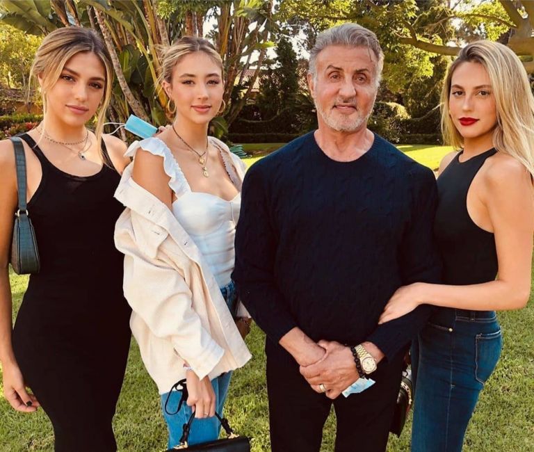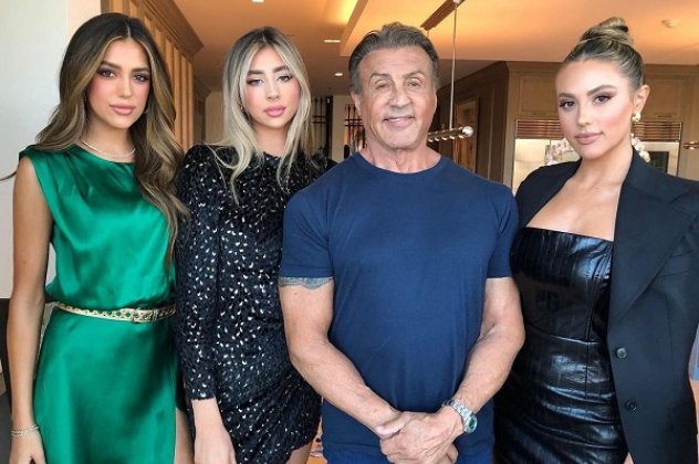 Χαρούμενος πατέρας o Sylvester Stallone που ανέβασε στο Instagram μια φωτογραφία με τις τρεις κούκλες κόρες του.