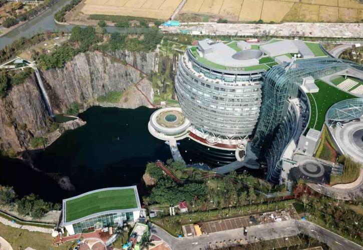 Το Intercontinental Shanghai Wonderland Hotel είναι το πρώτο ξενοδοχείο του κόσμου που κτίστηκε στο χώρο ενός παλιού λατομείου με 337 δωμάτια τα οποία βρίσκονται σε βάθος 88 μέτρων ενώ ο σχεδιασμός του ακολουθεί τις αρχές της βιοκλιματικής αρχιτεκτονικής. Εικόνα