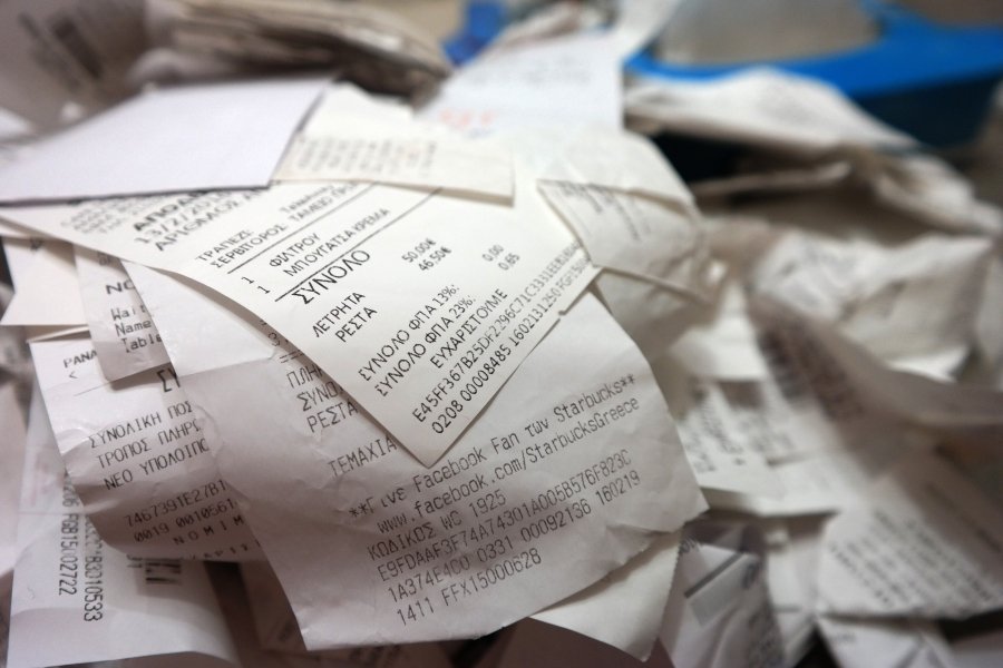 · σε καφενείο, η μη έκδοση 5 αποδείξεων, αξίας 64,50 ευρώ.