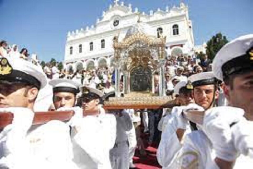 Από τα μεγαλύτερα προσκυνήματα της Μεγαλόχαρης είναι αυτό στην Τήνο.Στο κυκλαδίτικο νησί ο εορτασμός του Δεκαπενταύγουστου αποτελεί τη λαμπρότερη γιορτή. Κάθε χρόνο το επισκέπτονται χιλιάδες προσκυνητές και ανηφορίζουν με κατάνυξη προς την εκκλησία για να εκπληρώσουν το τάμα τους στη θαυματουργή εικόνα της Παναγίας ή να εναποθέσουν σε αυτήν τα προβλήματά τους.