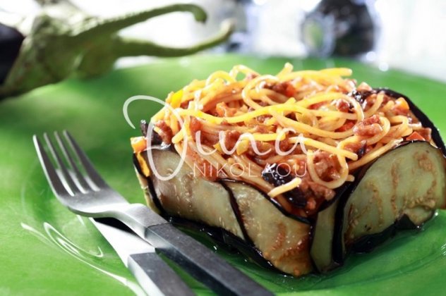 ΒΗΜΑ 9 Σκεπάζω το ταψί με μια πιατέλα και αναποδογυρίζω προσεκτικά ώστε το φαγητό να ξεφορμαριστεί στην πιατέλα. Αφαιρώ με προσοχή τη λαδόκολλα -οι μελιτζάνες καλύπτουν με ωραίο τρόπο το εσωτερικό μείγμα ζυμαρικών και κιμά- και σερβίρω αμέσως, κόβοντας με προσοχή το φαγητό σε κομμάτια-μερίδες.