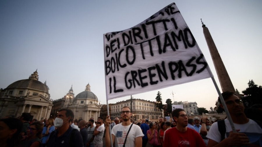 Νέες κινητοποιήσεις κατά της υποχρεωτικότητας των εμβολιασμών στην Ιταλία το Σάββατο (11/9/2021).