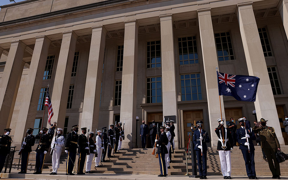 Οι Ηνωμένες Πολιτείες, η Βρετανία και η Αυστραλία ανακοίνωσαν την εγκαθίδρυση μιας νέας εταιρικής σχέσης ασφάλειας στην περιοχή του Ινδικού-Ειρηνικού που θα περιλαμβάνει βοήθεια προς την Αυστραλία να αποκτήσει πυρηνοκίνητα υποβρύχια, καθώς η κινεζική επιρροή στην περιοχή αυξάνεται.