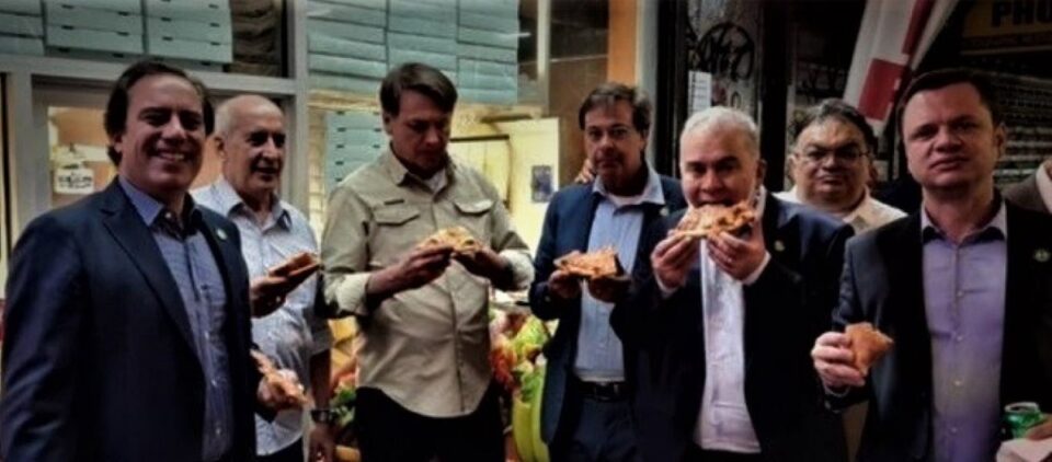 Δυο υπουργοί που τον συνοδεύουν ανάρτησαν φωτογραφίες του Μπολσονάρου και των βοηθών του να τρώνε πίτσα σε ένα πεζοδρόμιο του Μανχάταν, το βράδυ της Κυριακής. «Πολυτελές δείπνο στη Νέα Υόρκη», έγραψε ο υπουργός Προεδρίας Λουίς Εντουάρντο Ράμος.