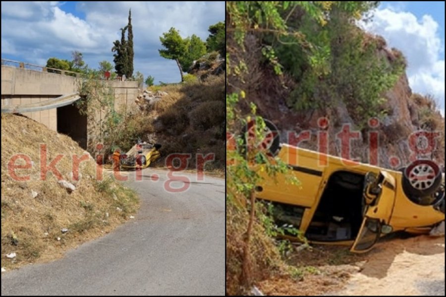 Σύμφωνα με τις πληροφορίες του ekriti, το αυτοκίνητο, το οποίο είχε κατεύθυνση από Χανιά προς Ηράκλειο, εξετράπη της πορείας του, προσέκρουσε στις μεταλλικές μπάρες και όπως βλέπετε στις φωτογραφίες, “προσγειώθηκε” με την οροφή σε δημοτικό δρόμο, πέφτοντας από γέφυρα!