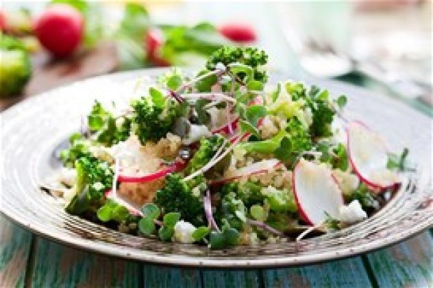 Προσθέτουμε την κινόα, το φρέσκο κάρδαμο, τα ραπανάκια, τη φέτα, το χυμό λεμονιού και ανακατεύουμε απαλά να ενωθούν τα υλικά.
