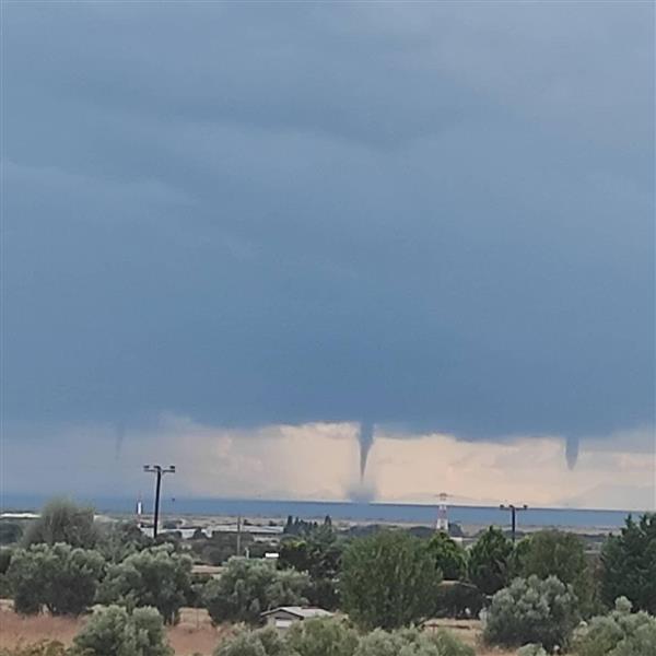 Οι τρεις υδροστρόβιλοι, όπως φαίνεται από τη φωτογραφία, σχηματίστηκαν κοντά στη θάλασσα.