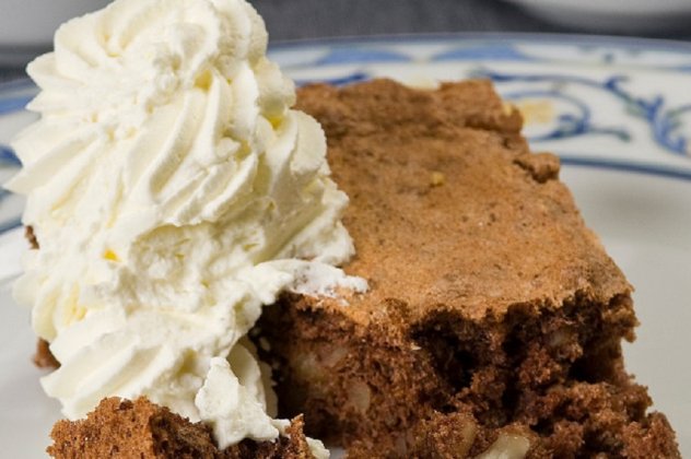 Αδειάζουμε το μείγμα σε βουτυρωμένη και αλευρωμένη φόρμα διαμέτρου 22 εκ. και ψήνουμε σε προθερμασμένο φούρνο στους 170°C-180°C για 50 λεπτά. Αφήνουμε να κρυώσει, ξεφορμάρουμε και σερβίρουμε με άγλυκη σαντιγί.