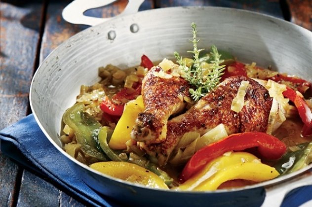 Σιγομαγειρεμένο χωριάτικο κοτόπουλο με μελωμένη σάλτσα πιπεριάς και μπύρας στην κατσαρόλα