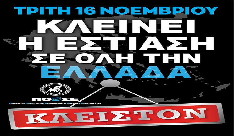 Σε κλείσιμο των καταστημάτων εστίασης σήμερα καλούν τους επαγγελματίες οι φορείς του κλάδου.