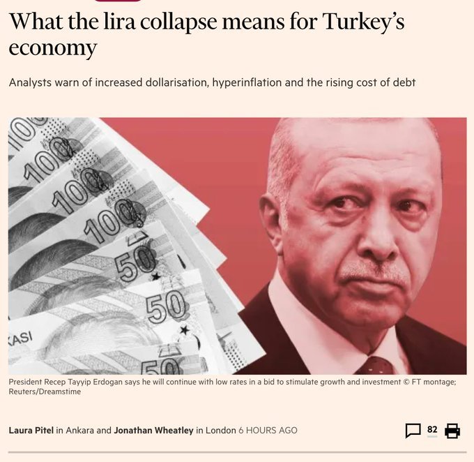 Για τον Τίμοθι Ας, αναλυτή της BlueBay Asset Management ειδικευμένο στην Τουρκία, ο πρόεδρος Ερντογάν «έχει χάσει τον έλεγχο. Μηδέν διακυβέρνηση, μηδέν αξιοπιστία. Δεν υπάρχει πια κεντρική τράπεζα στο τιμόνι».