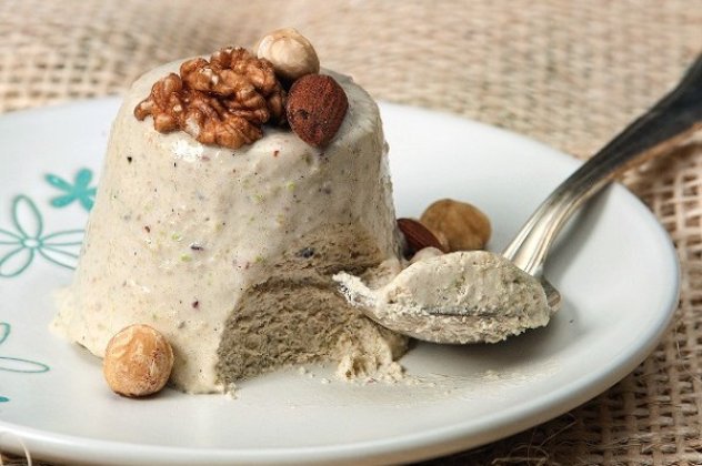 Μια εύκολη μπαβαρουάζ από καβουρδισμένους και αλεσμένους ξηρούς καρπούς.