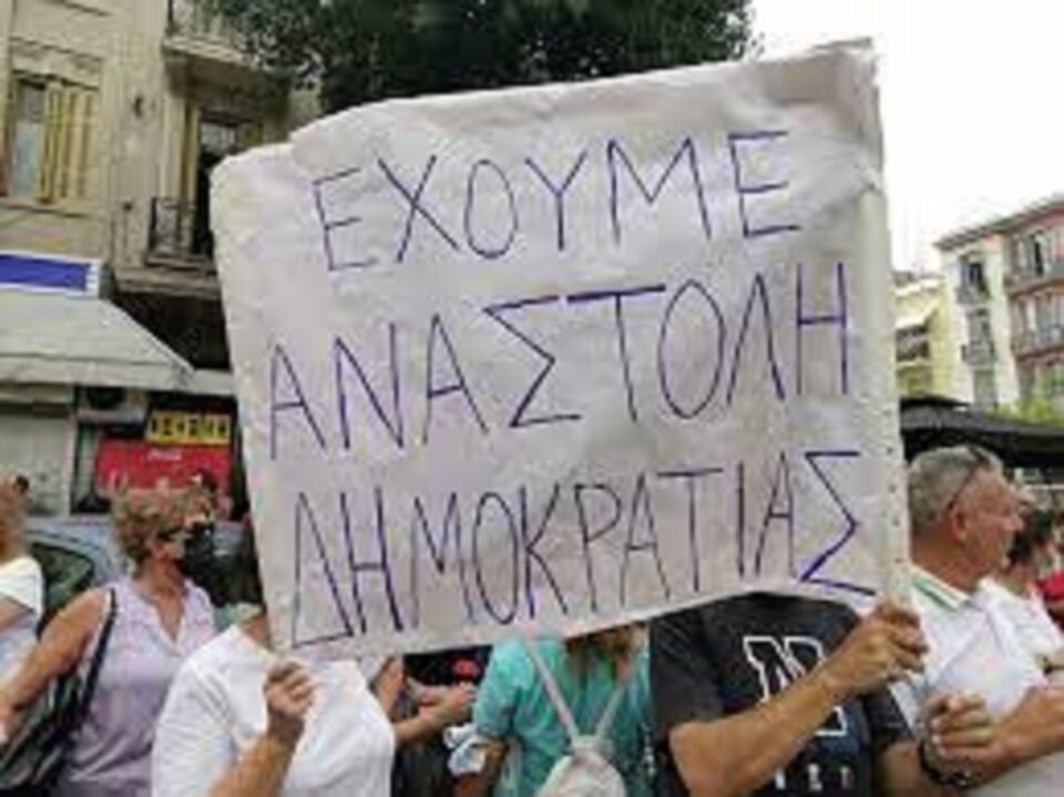 Παράσταση διαμαρτυρίας στην πλατεία Αγίας Σοφίας στη Θεσσαλονίκη, πραγματοποίησαν την Τρίτη για δύο ώρες, που αντιδρούν στις διαθεσιμότητες και στην υποχρεωτικότητα του εμβολιασμού κατά του κορωνοιού.