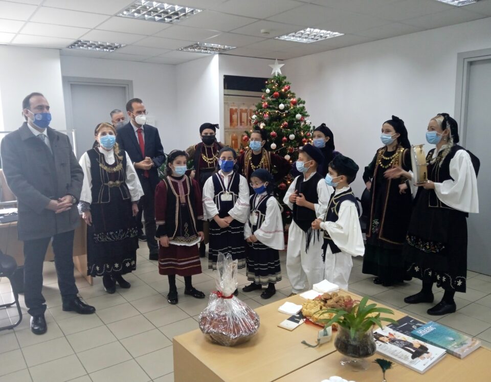 Γιορτινή ήταν η ατμόσφαιρα που επικράτησε σήμερα Παρασκευή 24 Δεκεμβρίου 2021, παραμονή Χριστουγέννων, στο γραφείο του Περιφερειάρχη Δυτικής Ελλάδας, Νεκτάριου Φαρμάκη, καθώς παραδοσιακά κάλαντα ακούστηκαν από εκπροσώπους φορέων και συλλόγων που επισκέφθηκαν τον Περιφερειάρχη.