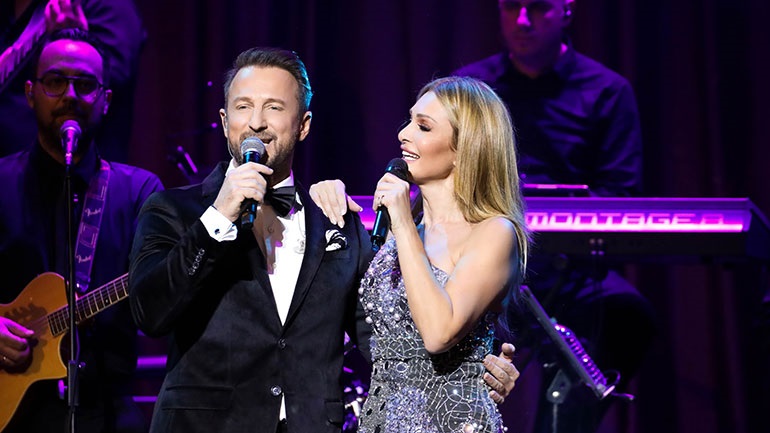Μαζί της επί σκηνής, ο δημοφιλής τραγουδιστής Κώστας Καραφώτης.