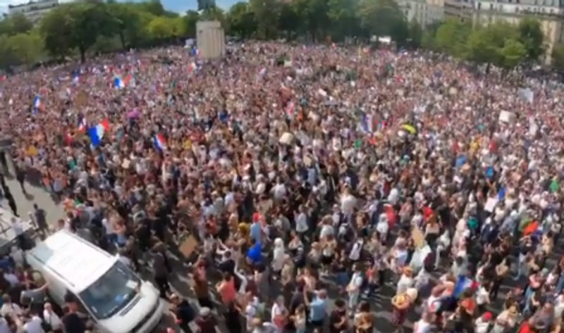 Η διαδήλωση στο Παρίσι διοργανώθηκε από ένα πρώην υψηλόβαθμο στέλεχος της Λεπέν, τον ακροδεξιό Φλοριάν Φιλιππό, ο οποίος λαμβάνοντας το λόγο κατηγόρησε τον Μακρόν για «προδοσία». «Είμαστε μάρτυρες της μεγαλύτερης καταπάτησης των ανθρώπινων δικαιωμάτων, τα μέτρα είναι παράλογα. Η κυβέρνηση λειτουργεί με το φόβο και οι άνθρωποι εμβολιάζονται με φόβο», δηλώνει ένας διαδηλωτής στη Le Monde. «Υπάρχει πολύ πίεση για το εμβόλιο. Κι εμένα δεν μου αρέσει να με αναγκάζουν».