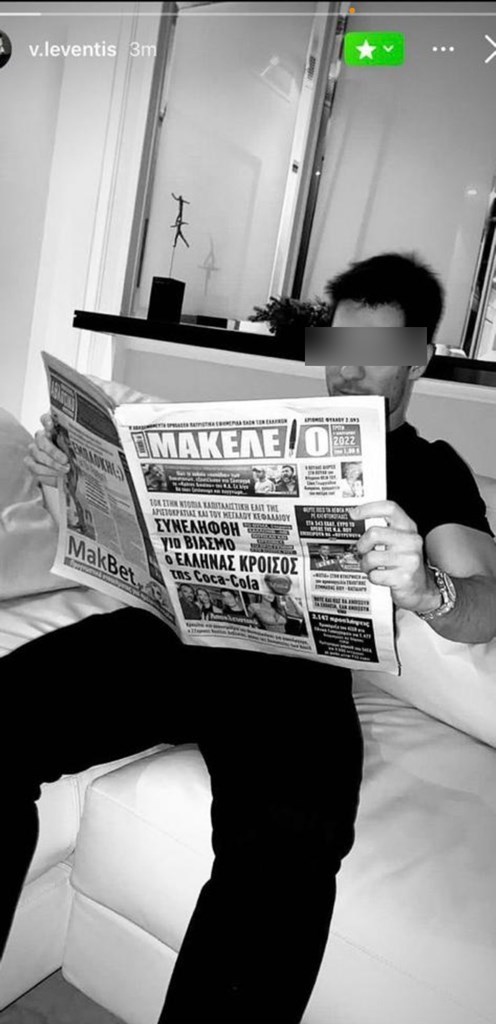 Λίγες ώρες από τη στιγμή που αφέθη ελεύθερος, έστω υπό όρους, ο νεαρός βλαστός της ισχυρής οικογένειας φωτογραφίζεται στο σαλόνι του σε μια προκλητική στάση επιδεικνύοντας την πρώτη σελίδα εφημερίδας με τον εξαιρετικά ευδιάκριτο τίτλο «Συνελήφθη για βιασμό ο Έλληνας κροίσος της Coca-Cola». Πρόκειται, φυσικά, για τον Β.Λ., ο οποίος, θέλοντας να διαμηνύσει πως γράφει στα παλαιότερα των υποδημάτων του ή ακόμη χειρότερα στα «α@@@@@α» του και τη Δικαιοσύνη και την κοινή γνώμη αλλά και το κοινό περί Δικαίου αίσθημα, ανάρτησε ο ίδιος στο Διαδίκτυο το επαίσχυντο αυτό στιγμιότυπο.