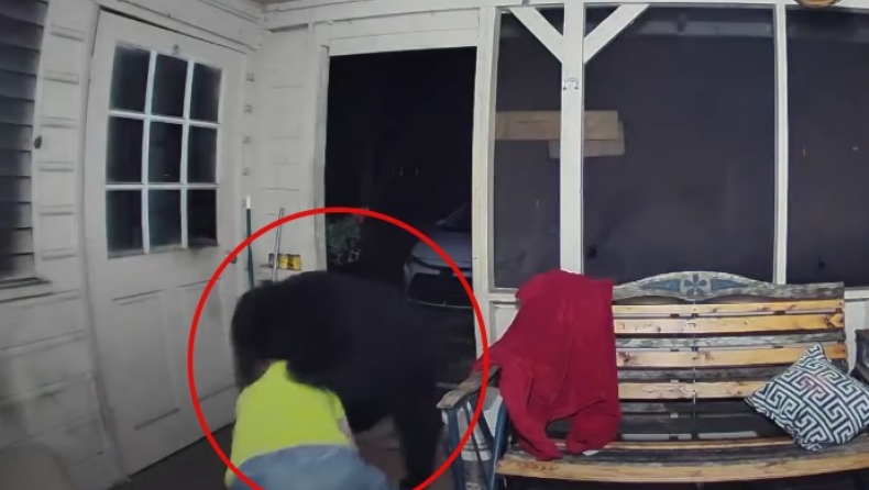 Όταν είδε την αρκούδα να περάσει από την πόρτα του υπαίθριου χώρου, αμέσως τα προσπάθησε να την απωθήσει.