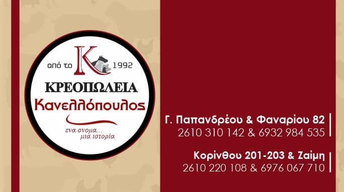 Click MindsΚρεοπωλεία Κανελλόπουλος: Ένα όνομα… μια ιστορία! by 4press31 Ιανουαρίου 202231 Ιανουαρίου 2022 Share0 Τα κρεοπωλεία Κανελλόπουλος στην Πάτρα συνεχίζουν να προσφέρουν ντόπια κρέατα για κάθε γούστο! Από το 1992 με οδηγό την ποιότητα και την αξιοπιστία!