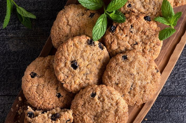 - Σε ένα μπολ βάζουμε το αλεύρι, τη ζάχαρη, τη βρόμη, την κανέλα, το τζίντζερ, τις σταφίδες και το βούτυρο. Αφήνουμε στην άκρη.