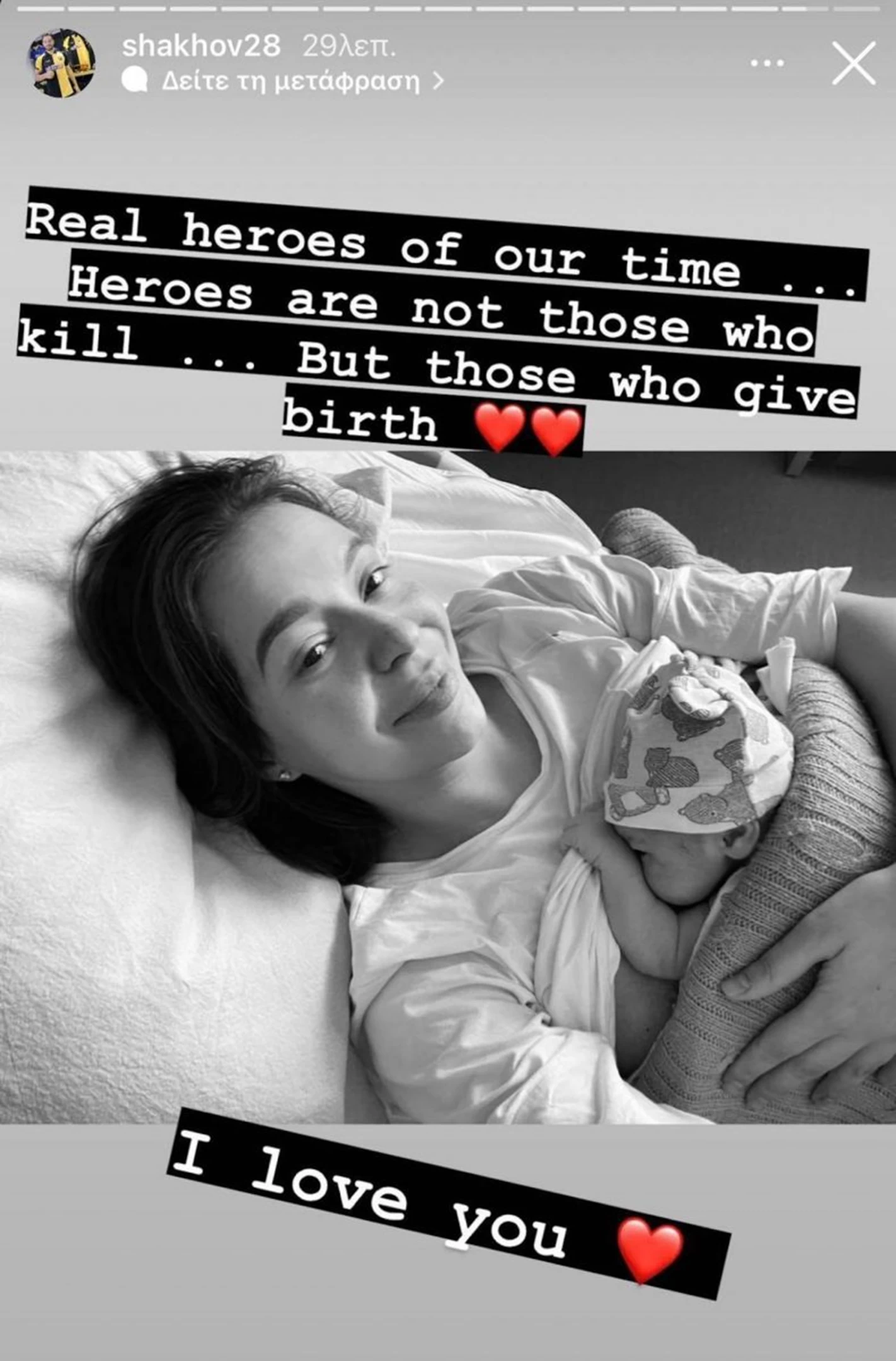 “Οι πραγματικοί ήρως της εποχής μας. Οι ήρωες που δεν σκοτώνουν, αλλά αυτοί που δίνουν ζωή! Σ’ αγαπώ πολύ” ήταν το μήνυμα του 31χρονου ποδοσφαιριστή στο Instagram ποστάροντας τη σχετική φωτογραφία της συζύγου του με το νέο μέλος της οικογένειάς τους.