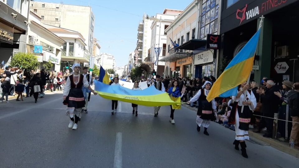 Ξεχωριστό τόνο έδωσαν στην παρέλαση που έγινε στην Πάτρα πρόσφυγες από την Ουκρανία που μένουν στην περιοχή, που παρέλασαν με Ουκρανικές και Ελληνικές σημαίες.