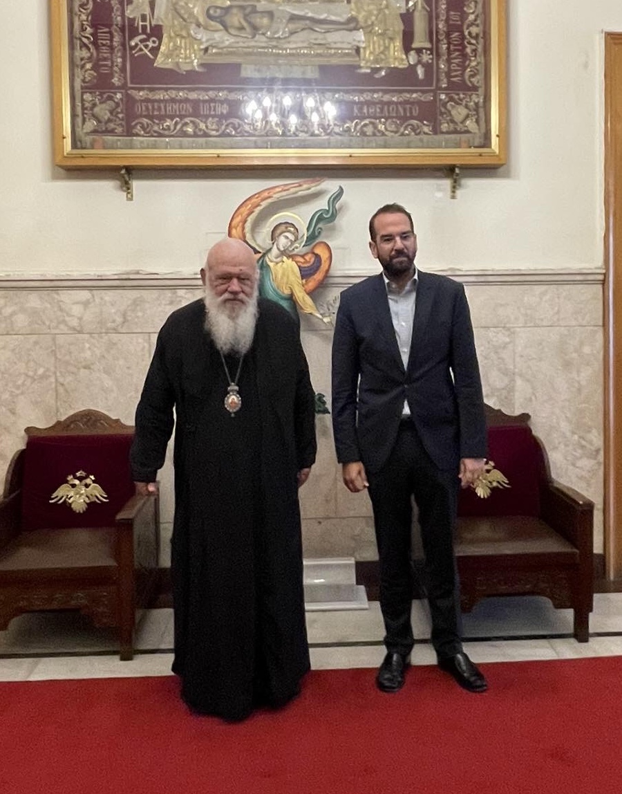 Τον Μακαριώτατο Αρχιεπίσκοπο Αθηνών και πάσης Ελλάδος κ. Ιερώνυμο επισκέφθηκε το πρωί της Μεγάλης Δευτέρας 18 Απριλίου 2022 ο Περιφερειάρχης Δυτικής Ελλάδος κ. Νεκτάριος Φαρμάκης.