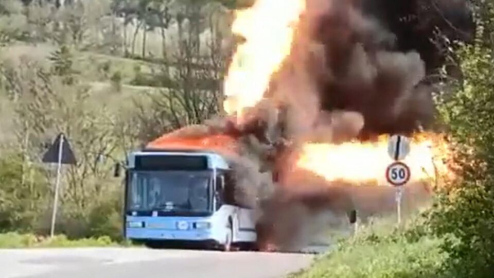 Στις φλόγες τυλίχθηκε ένα αστικό λεωφορείο, που κατανάλωνε φυσικό αέριο, το Σάββατο 16 Απριλίου κοντά στην πόλη Περούτζια της Ιταλίας, όπως δείχνει ένα βίντεο που κάνει τον γύρο του διαδικτύου.