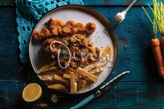 Σερβίρω το λεμονάτο με πατατούλες τηγανητές ή με αφράτο πουρέ.