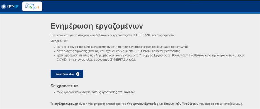 Μέσω αυτής ο κάθε εργαζόμενος έχει άμεση και εύκολη πρόσβαση σε όλες τις εργασιακές σχέσεις με τους εργοδότες όπου έχει απασχοληθεί, καθώς και στα πιο πρόσφατα καταγεγραμμένα στοιχεία της κάθε σχέσης, όπως έχουν καταγραφεί στο Π.Σ. ΕΡΓΑΝΗ από τις δηλώσεις των υπόχρεων εργοδοτών. Παράλληλα, μπορεί να βλέπει σε πραγματικό χρόνο τις αλλαγές που πραγματοποιούνται στο Π.Σ. ΕΡΓΑΝΗ και τον αφορούν, μέσω προωθητικών ειδοποιήσεων (push notifications). Η είσοδος στην υπηρεσία προϋποθέτει αυθεντικοποίηση με τη χρήση των κωδικών πρόσβασης TaxisNet.