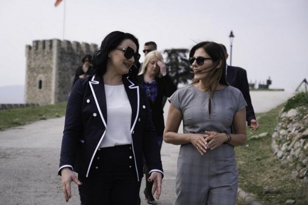 Η Μπέττυ Μπαζιάνα επισκέφτηκε το μεσημέρι της Τρίτης το κάστρο των Σκοπίων όπου την υποδέχτηκε η σύζυγος του Ζόραν Ζάεφ, Ζόριτσα Ζαέβα.