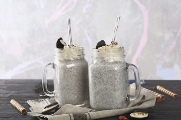 Για το milkshake: Ρίχνουμε στον κάδο του μπλέντερ το γάλα, το παγωτό, 8 μπισκότα Oreo, το εκχύλισμα βανίλιας και χτυπάμε μέχρι το μείγμίγμα σε ποτήρια.