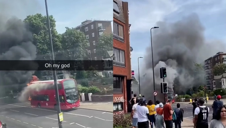 Συναγερμός στο Λονδίνο, με διώροφο λεωφορείο να τυλίγεται στις φλόγες και τους επιβάτες με τον οδηγό να τρέχουν μακριά του.