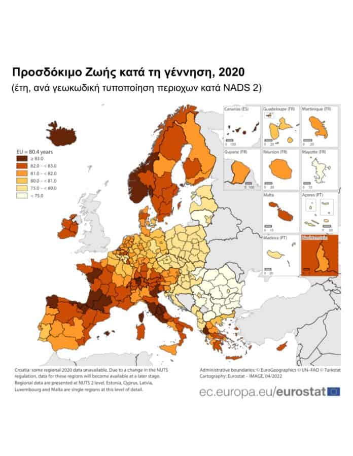 «Καθ’ ακολουθία της έξαρσης της πανδημίας COVID-19 κατά το έτος 2020, το προσδόκιμο ζωής κατά τη γέννηση (life expectancy at birth) σημείωσε πτώση στη συντριπτική πλειοψηφία των κρατών μελών της ΕΕ: η μέση τιμή στην ΕΕ μειώθηκε από 81.3 σε 80.4 έτη».